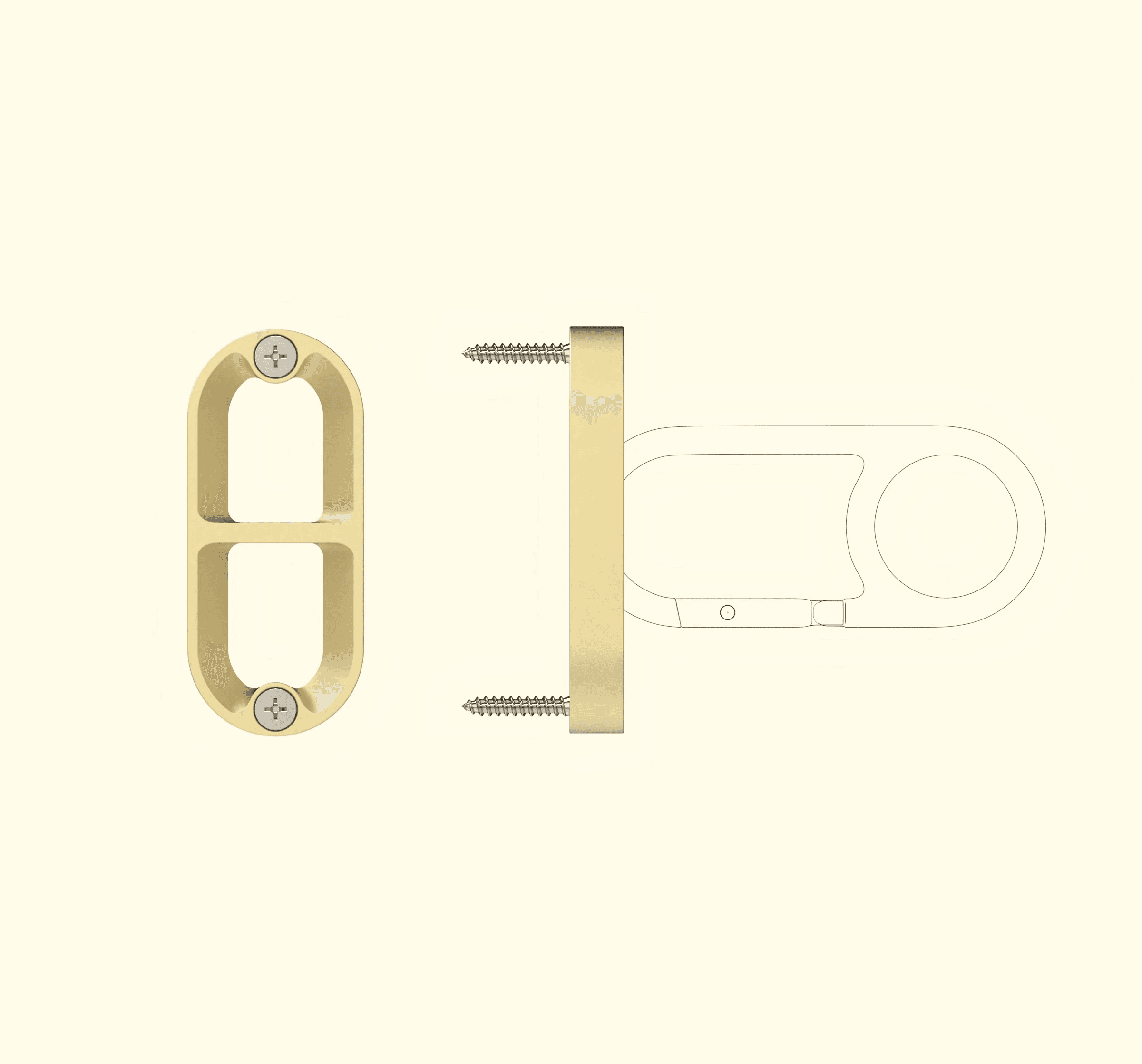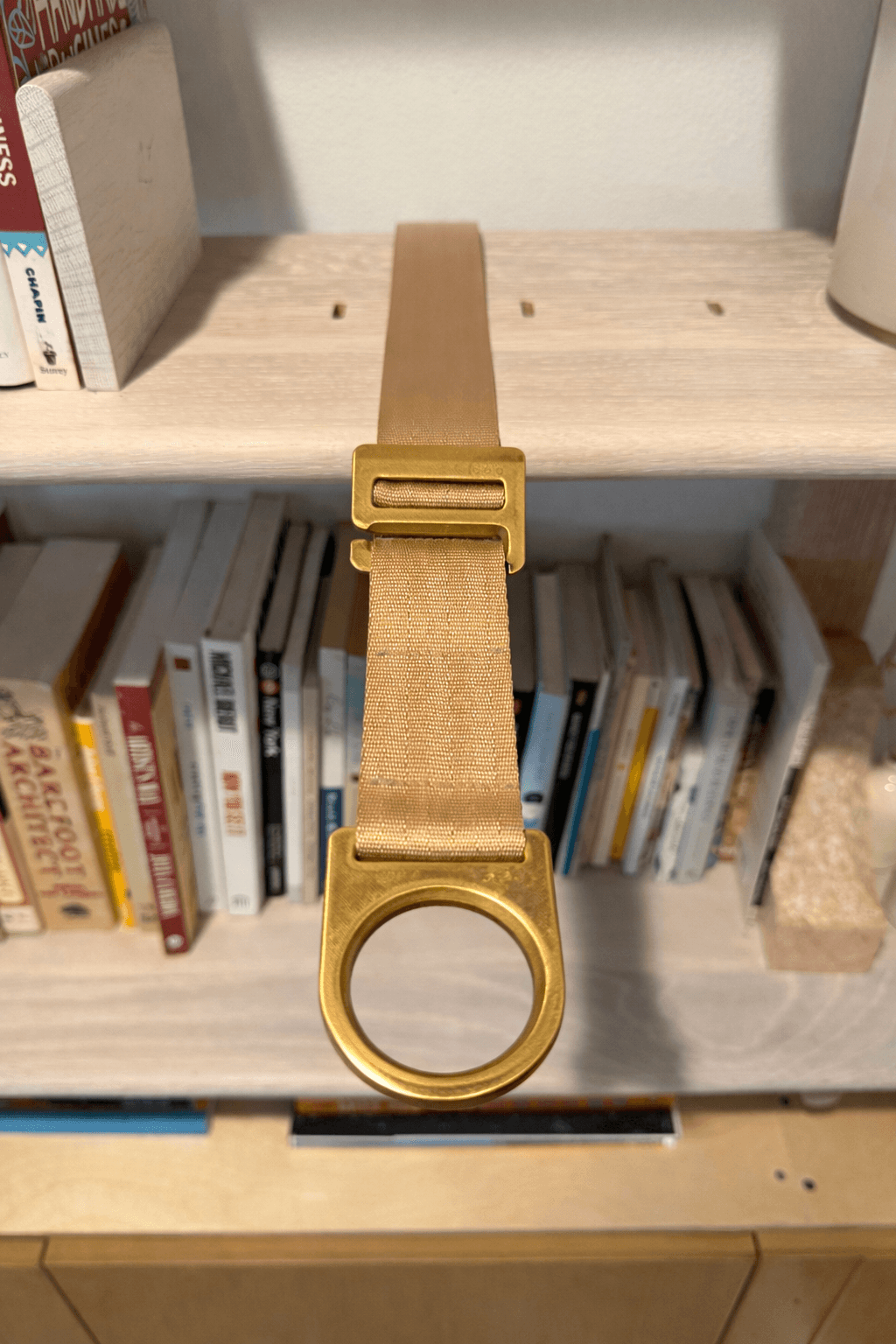 A low-profile brass anchor that stays hidden until you need it. Always ready, never in the way. Mount once. Use daily.