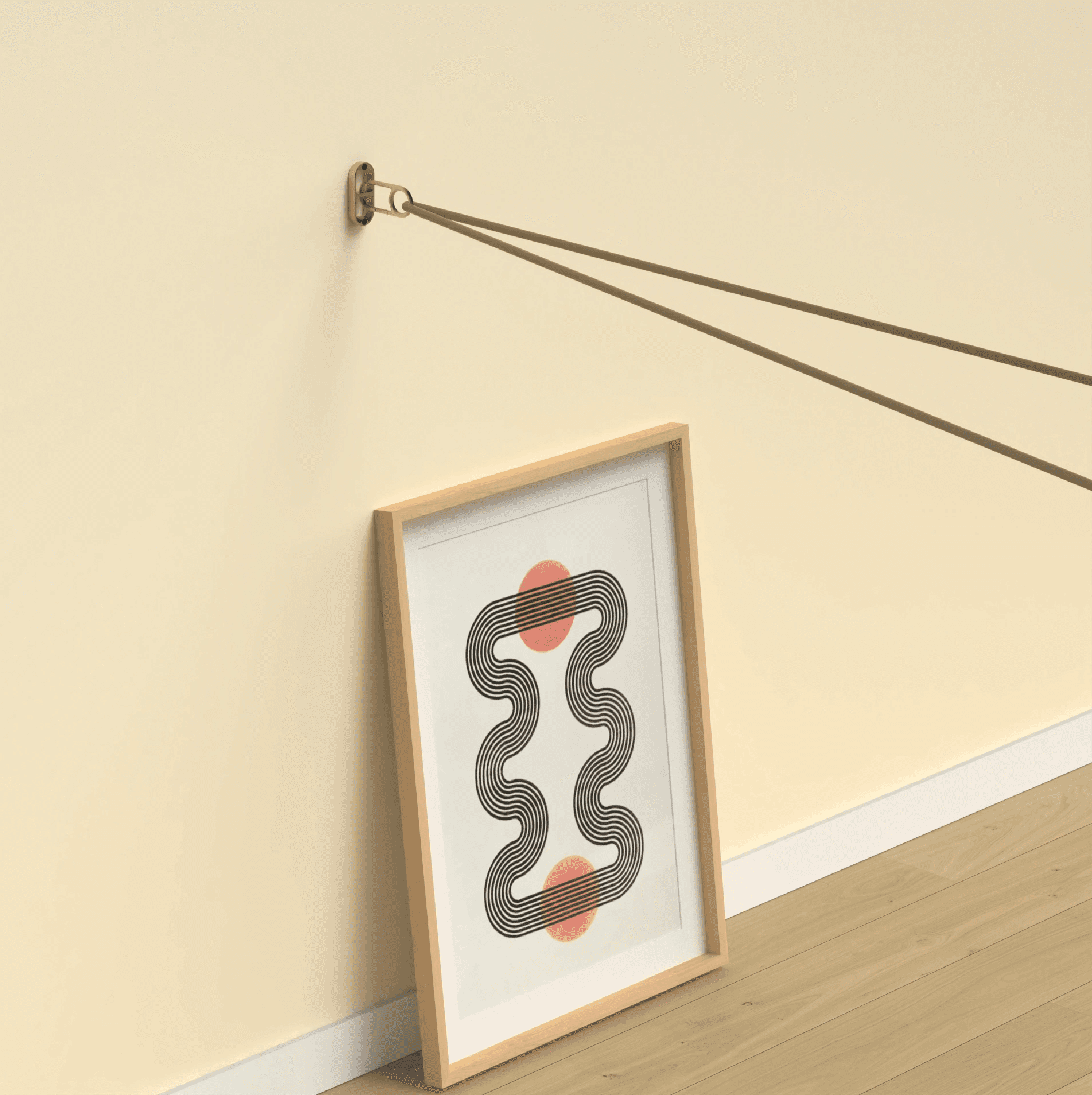 Wall anchor disappears behind art or frames.